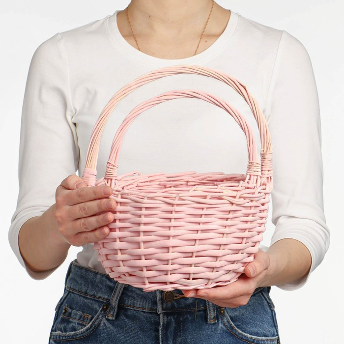 Корзина плетеная бамбук, D13xH9,5/28см, светло-розовая
