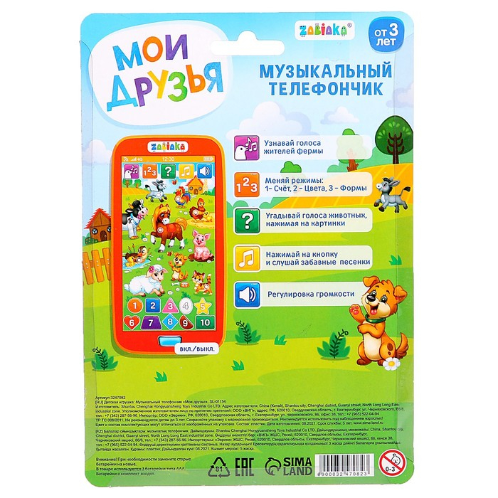 Музыкальный телефончик «Мои друзья», звуковые эффекты, работает от батареек