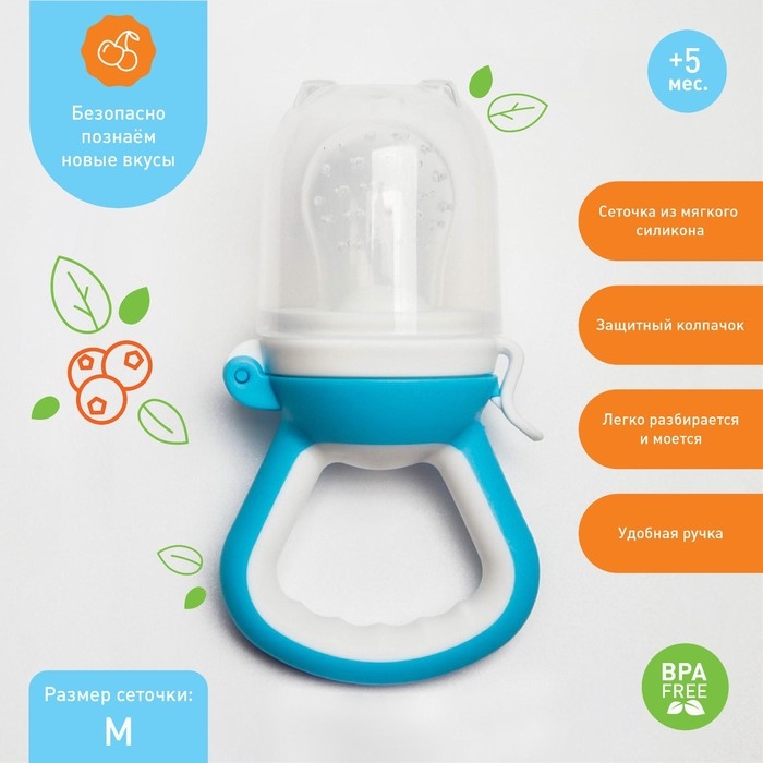 Изделие для прикорма (ниблер) пригодится в период, когда ребёнок переходит с кашки и молока на твёрдую пищу. Приспособление разовьёт у крохи жевательные навыки. Также предмет будет безопасно массировать дёсны во время прорезывания зубов.