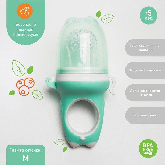 Изделие для прикорма (ниблер) пригодится в период, когда ребёнок переходит с кашки и молока на твёрдую пищу. Приспособление разовьёт у крохи жевательные навыки. Также предмет будет безопасно массировать дёсны во время прорезывания зубов.