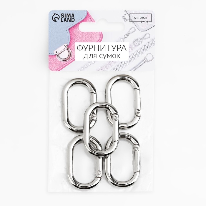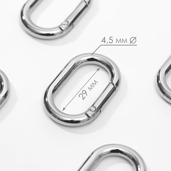 Овал-карабин, 38 × 24 мм / 29 × 15 мм, толщина - 4,5 мм, 5 шт, цвет серебряный