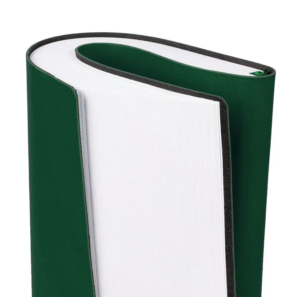 Ежедневник с гибкой обложкой, выполнен из материала Latte, зеленый FF, дополнен резинкой шириной 1 см с металлическим шильдом, капталом и ляссе зеленого цвета.