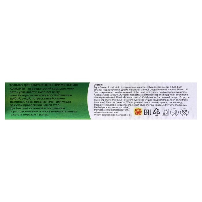 Аюрведический крем для пяток Самхита увлажняет и смягчает кожу. Способствует активному восстановлению грубой, сухой, потрескавшейся кожи.