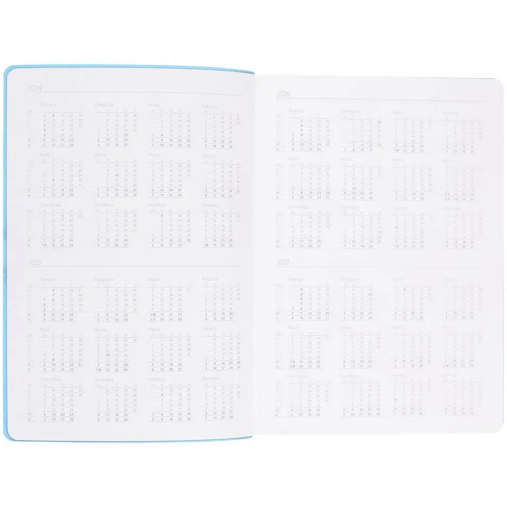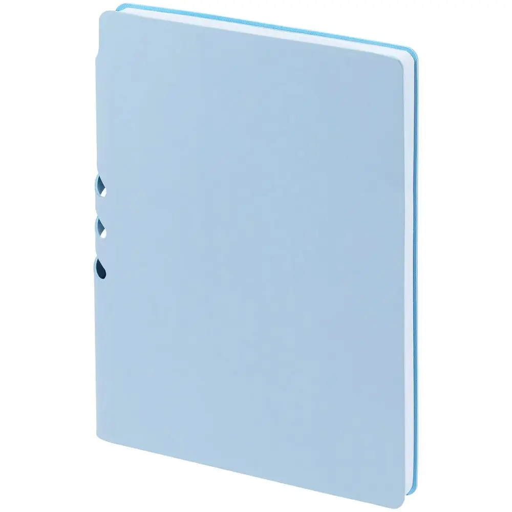 Гибкая обложка выполнена из материала Soft Touch, голубой JJ и Latte, голубой JJ (внутренняя часть обложки). Внутри корешка — специальное место для крепления ручки размером до 15х1 см.
