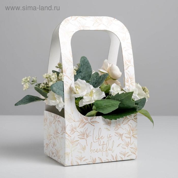 Коробка-переноска для цветов «Веточки», 17 × 12 × 32 см