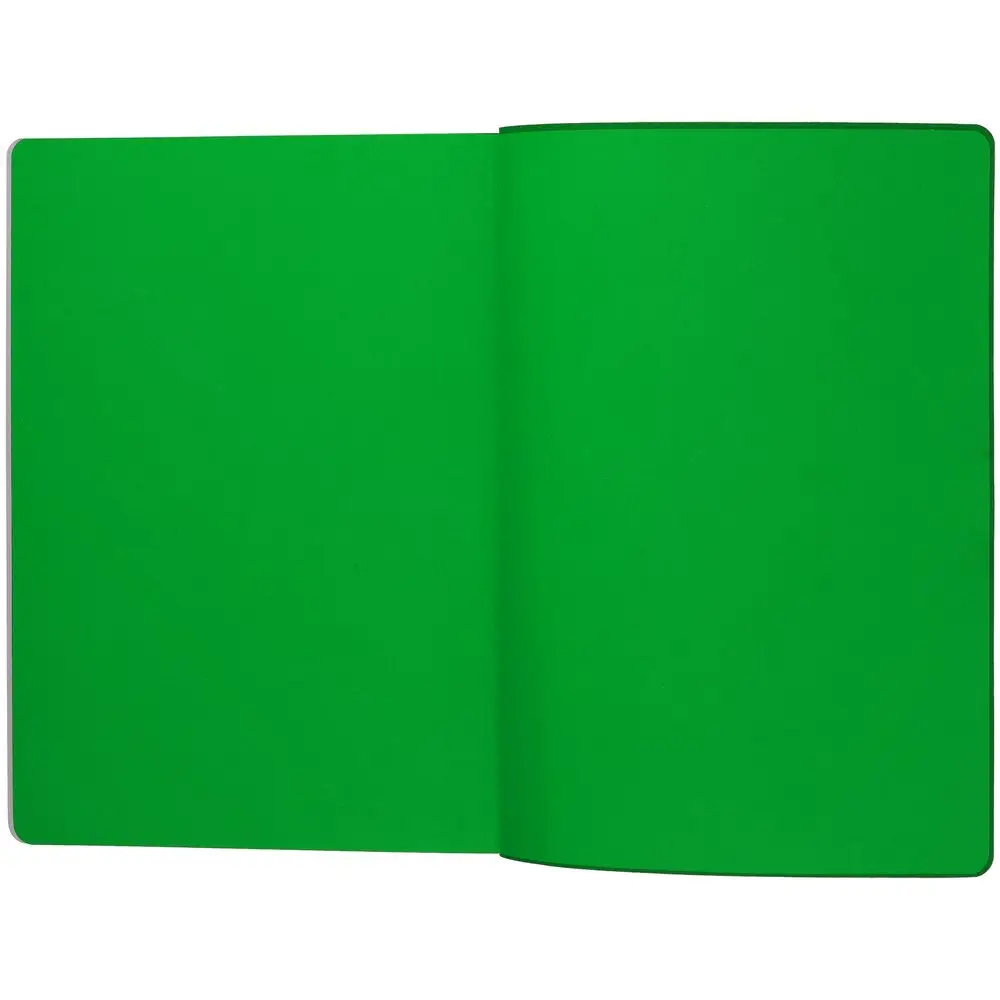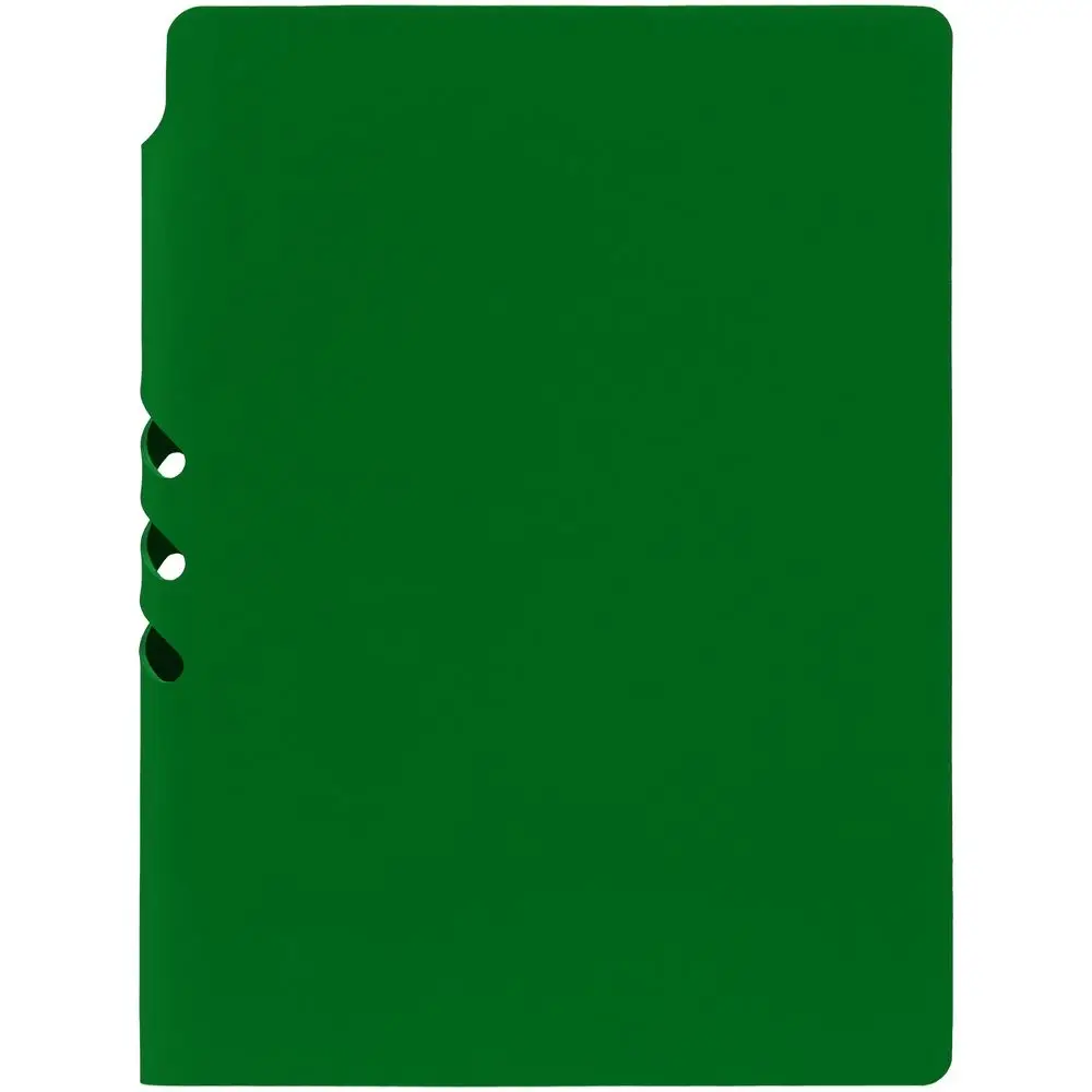 Гибкая обложка выполнена из материала Soft Touch Ultra, зеленый FF и Latte, зеленый FF (внутренняя часть обложки). Внутри корешка — специальное место для крепления ручки размером до 15х1 см.