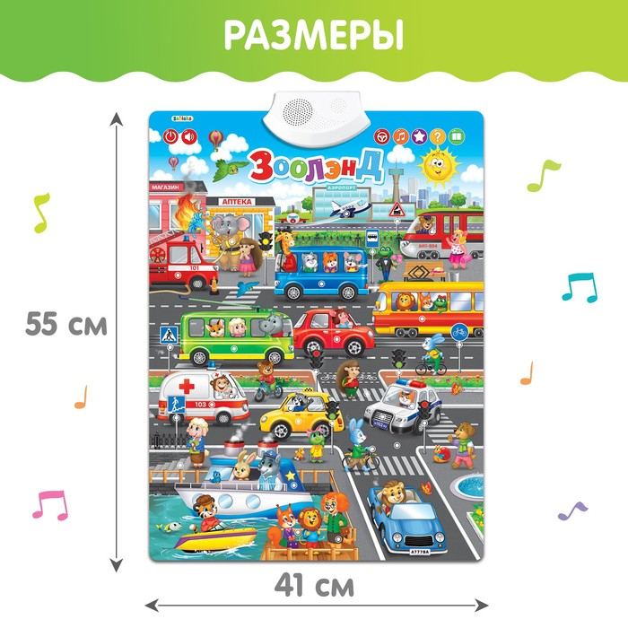 Говорящий электронный плакат «Зоолэнд», работает от батареек