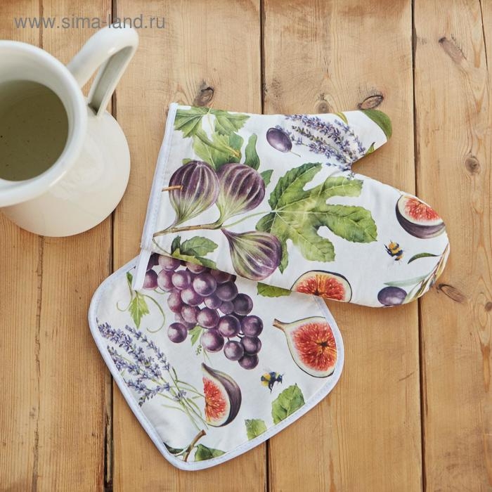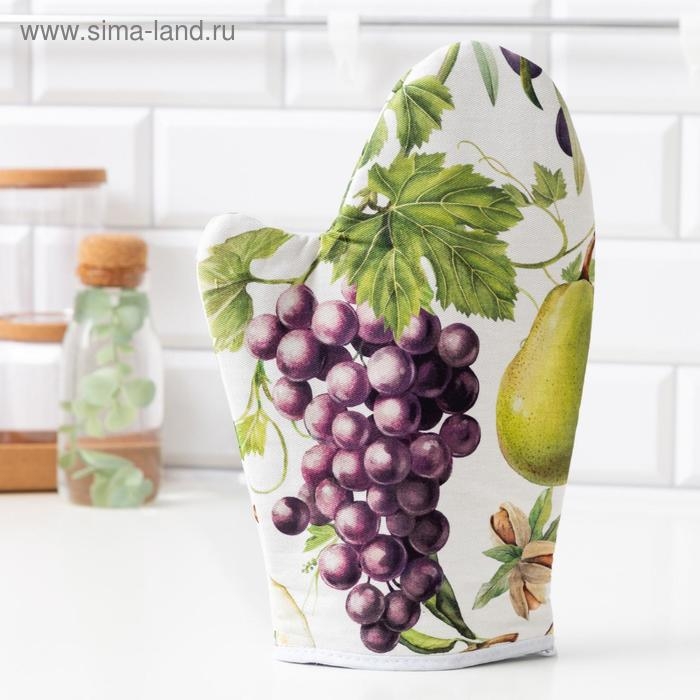 Варежка-прихватка "Этель" Фруктовый сад 20х27см,100% хлопок, ватин 250г/м2 (двухсторонняя)