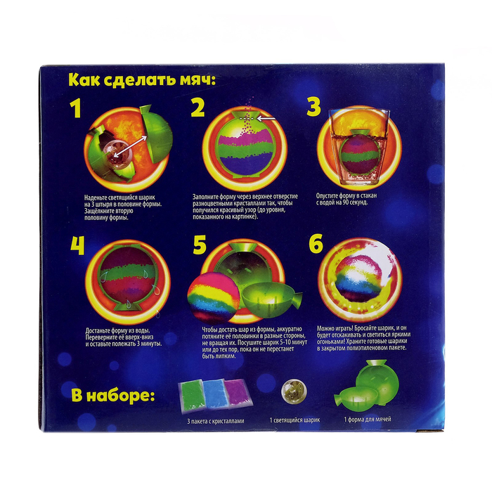 С набором для опытов «Прыгающие мячи» ребёнок проведёт химический эксперимент и узнает, как создать светящийся мяч-попрыгунчик своими руками.