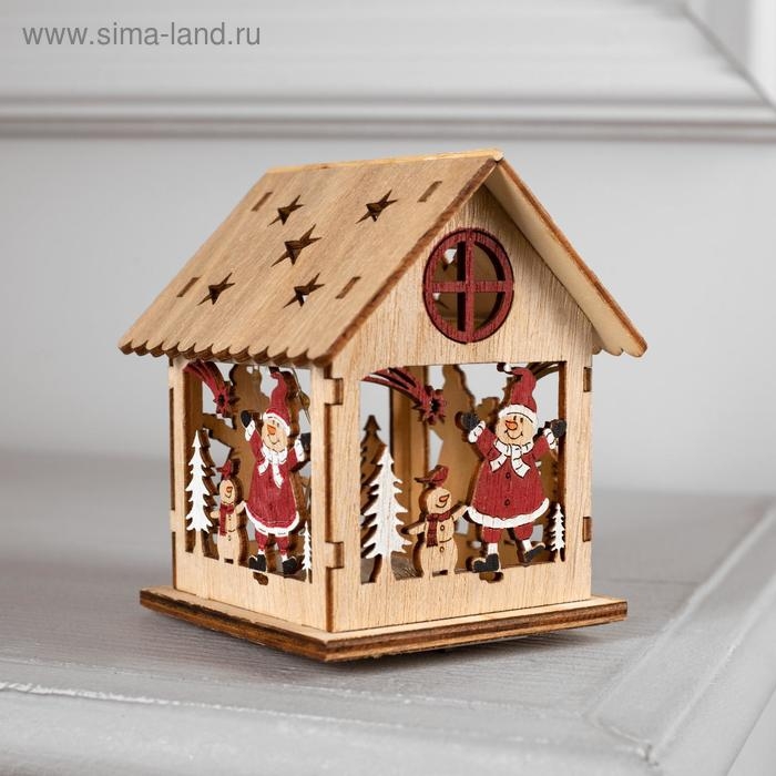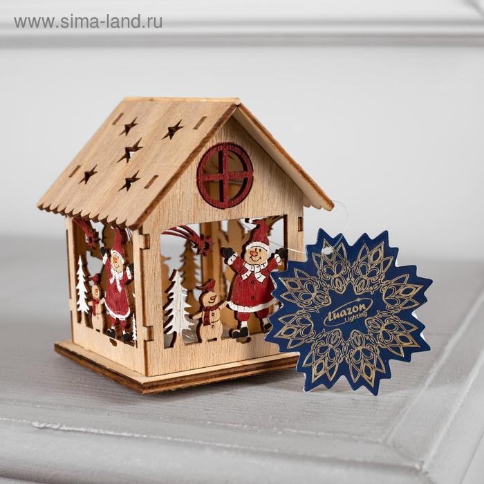 Ёлочная игрушка «Домик со снеговиком», от батареек, свечение тёплое белое