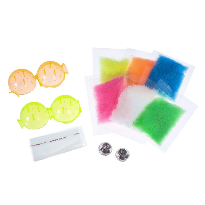 - 6 пакетиков с кристаллами для изготовления мяча разных цветов.