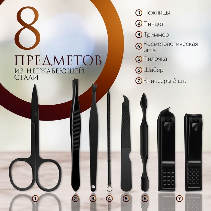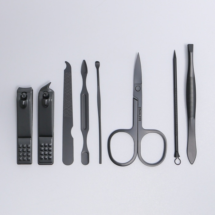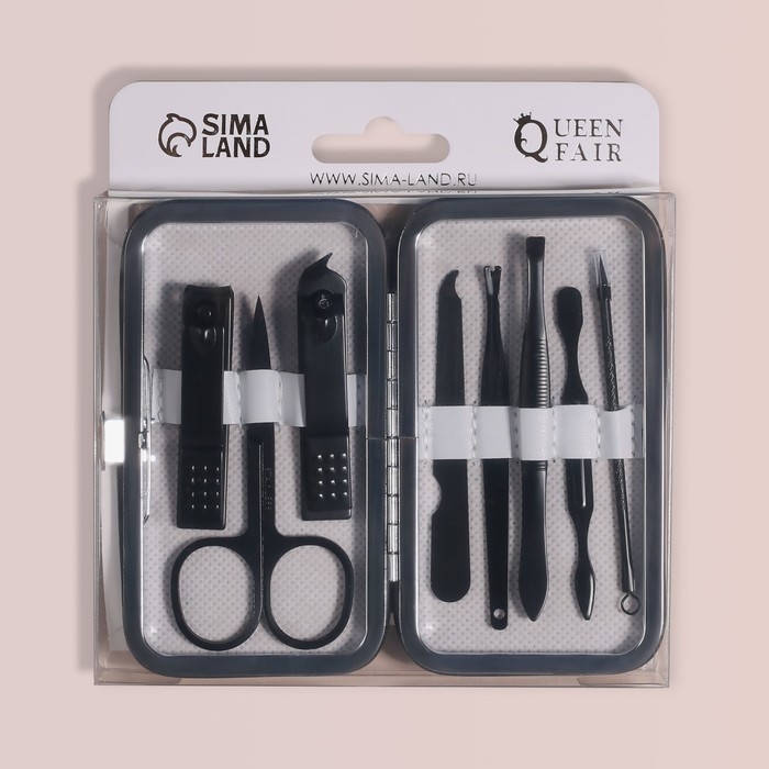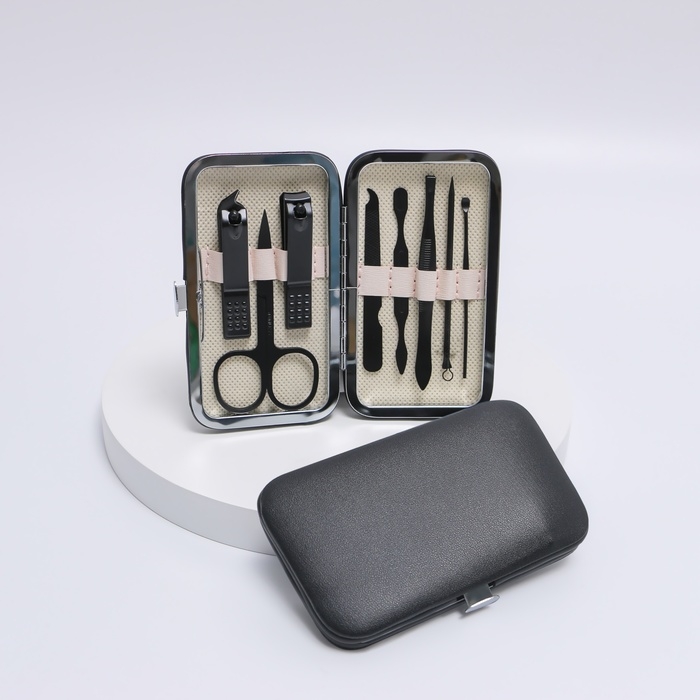 Набор маникюрный «Black», 8 предметов, в футляре, цвет чёрный