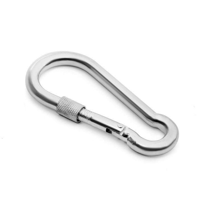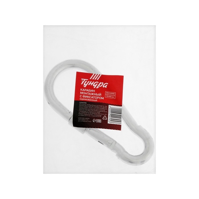 Карабин монтажный с фиксатором ТУНДРА krep, DIN5299D, 12х140 мм, оцинкованный, 1 шт.