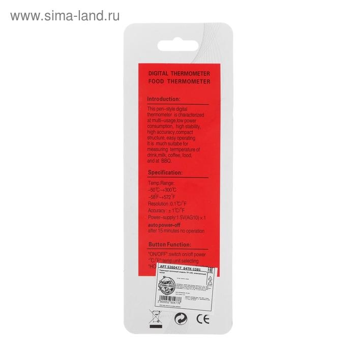 Термометр (термощуп) кухонный LTR-19, максимальная температура 300 °C, от LR44, серебристый