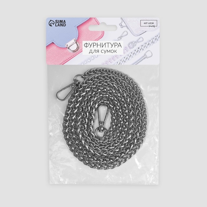 Цепочка для сумки, с карабинами, железная, 7 × 7 мм, 120 ± 2 см, цвет серебряный