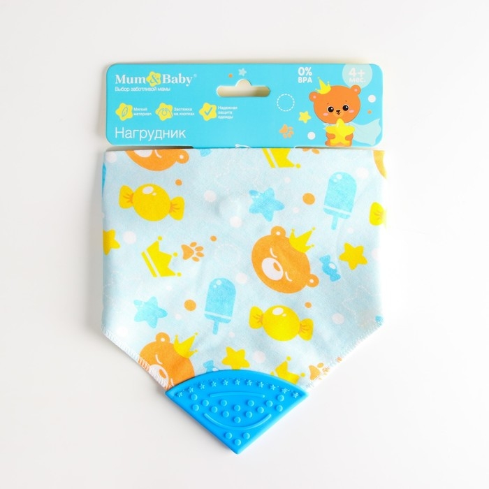 Нагрудник-бандана/слюнявчик для кормления «Мишка Принц» непромокаемый с прорезывателем, на кнопке