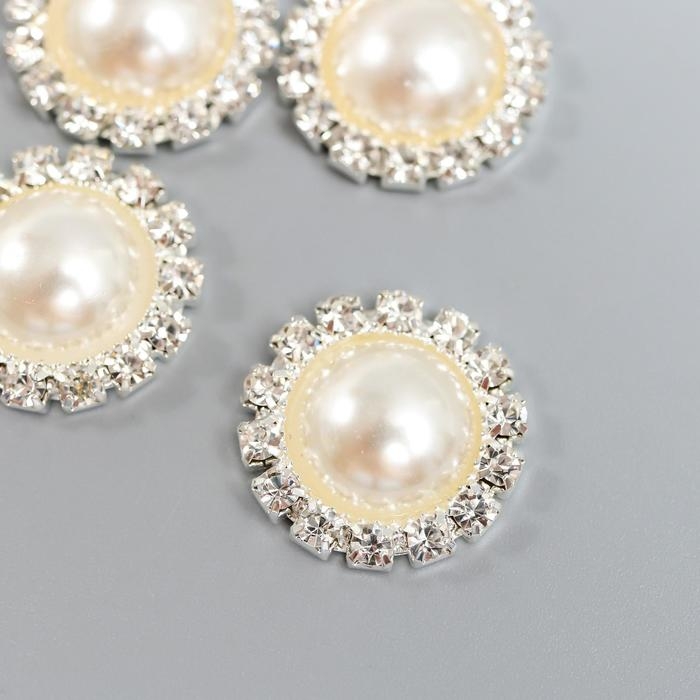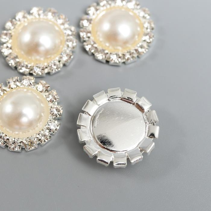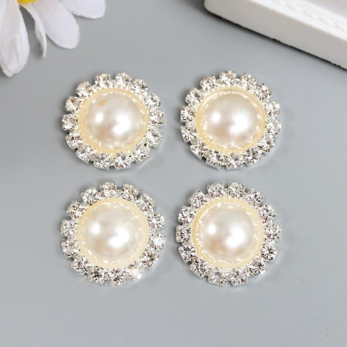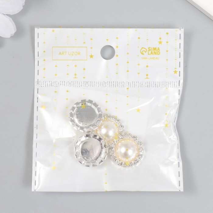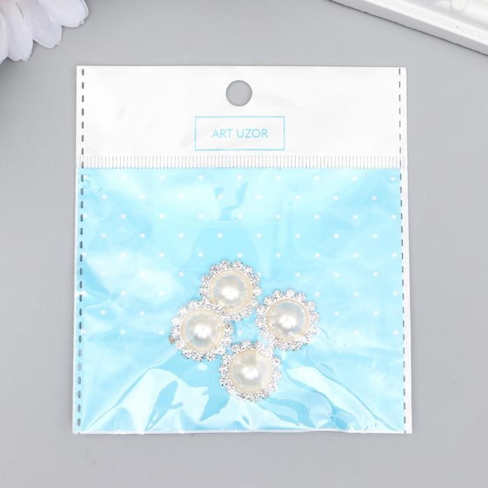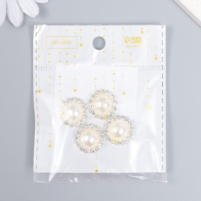 Декор для творчества металл "Жемчужинка в кружеве" набор 4 шт 1,8х1,8х0,5 см