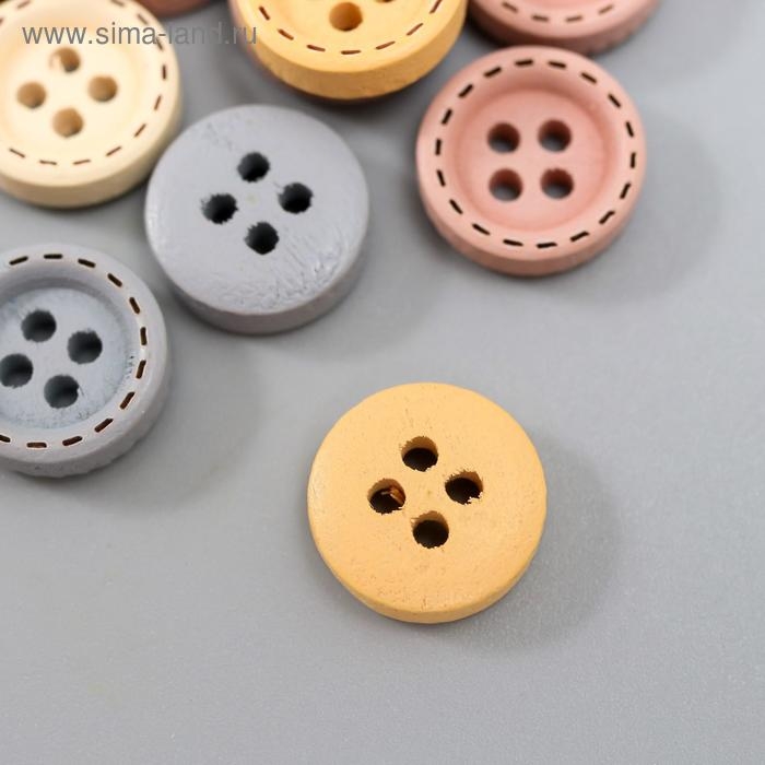 Пуговицы дерево для творчества 4 прокола "Стиль" набор 40 шт МИКС 1,2х1,2 см