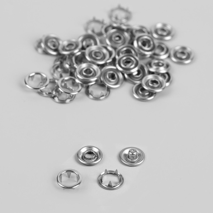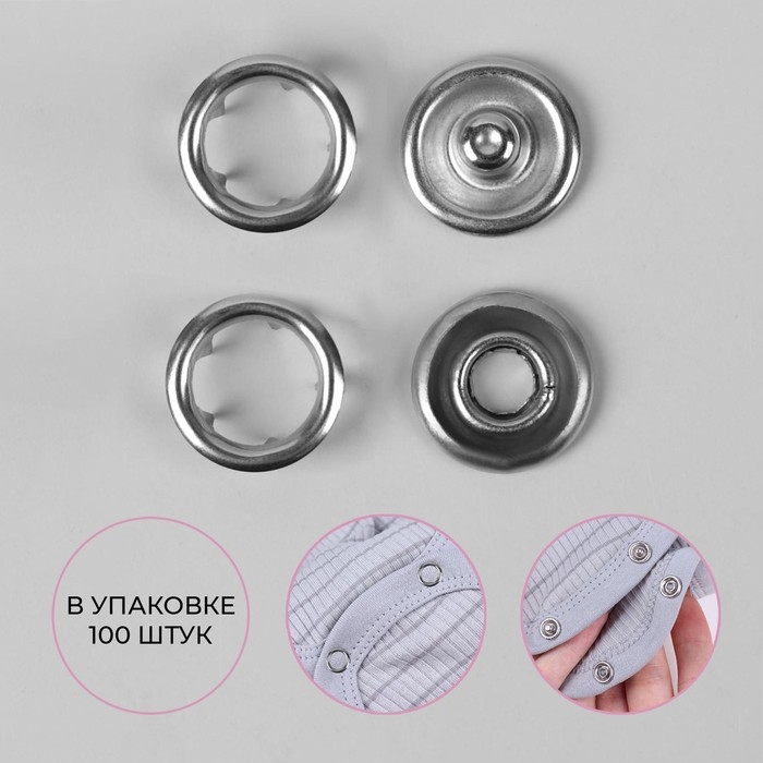 Кнопки рубашечные, открытые, d = 9,5 мм, 100 шт, цвет серебряный