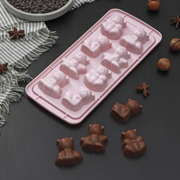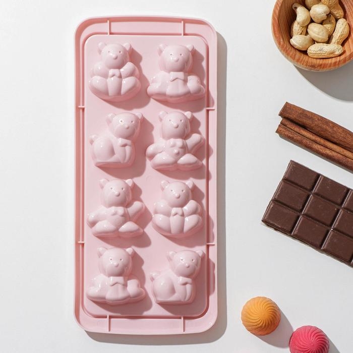 Форма для конфет и шоколада «Зверята», 8 ячеек, 25×11×2,5 см, цвет МИКС