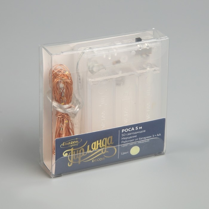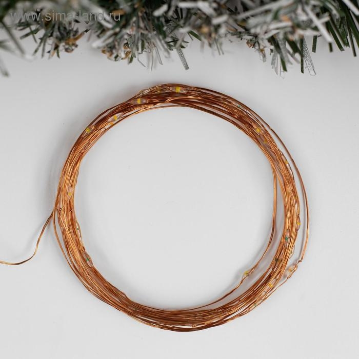 Гирлянда «Нить» 5 м роса, IP20, медная нить, 50 LED, мерцание, батарейки AAх3 (нет в комплекте), свечение тёплое белое