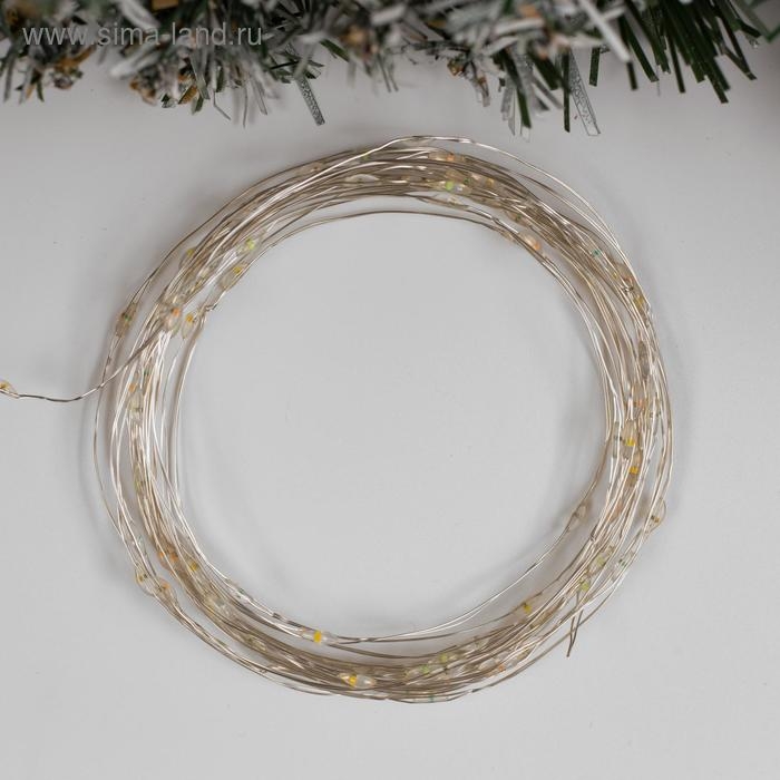 Гирлянда «Нить» 5 м роса, IP20, серебристая нить, 100 LED, 2 режима, батарейки AAх3 (не в комплекте), свечение мульти