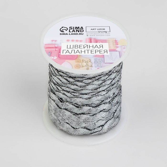 Тесьма отделочная «Вьюнчик», 5 мм, 27 ± 1 м, цвет серебряный
