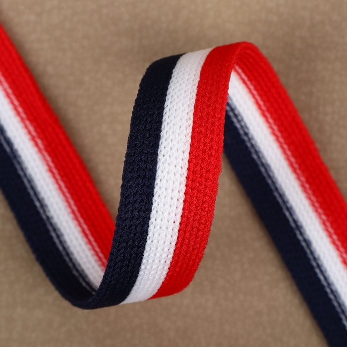 Тесьма трикотажная лампас 25 мм, 9,1 ± 0,5 м, цвет красный/белый/тёмно-синий