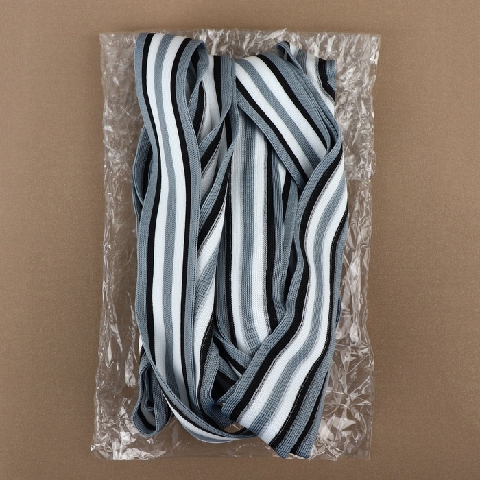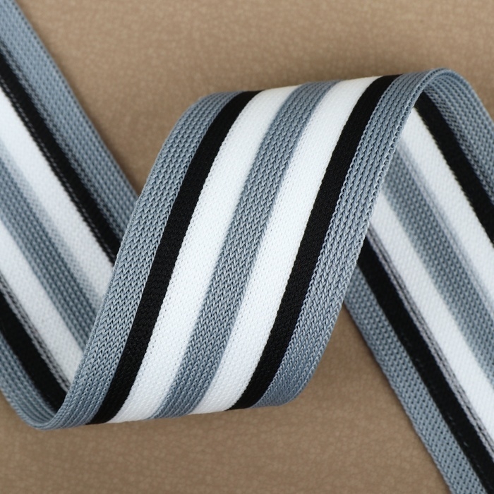 Тесьма трикотажная лампас 40 мм, 9 ± 0,5 м, цвет серый/чёрный/белый
