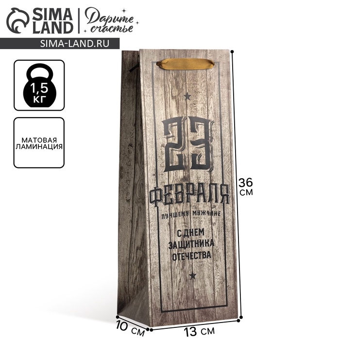 Пакет подарочный под бутылку, упаковка, «С Днем Защитника Отечества», 35 х 13 х 10 см