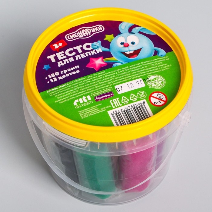 Тесто для лепки, 12 цветов по 15 гр, Смешарики
