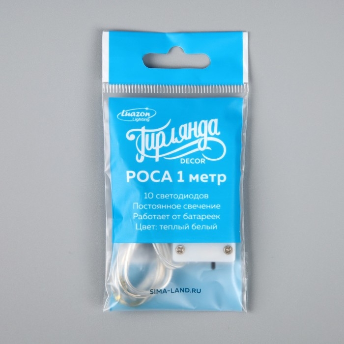 Гирлянда «Нить» 1 м роса, IP20, серебристая нить, 10 LED, батарейки CR2032х2 (в комплекте), свечение тёплое белое