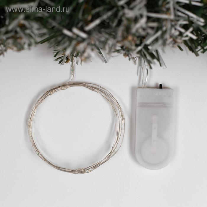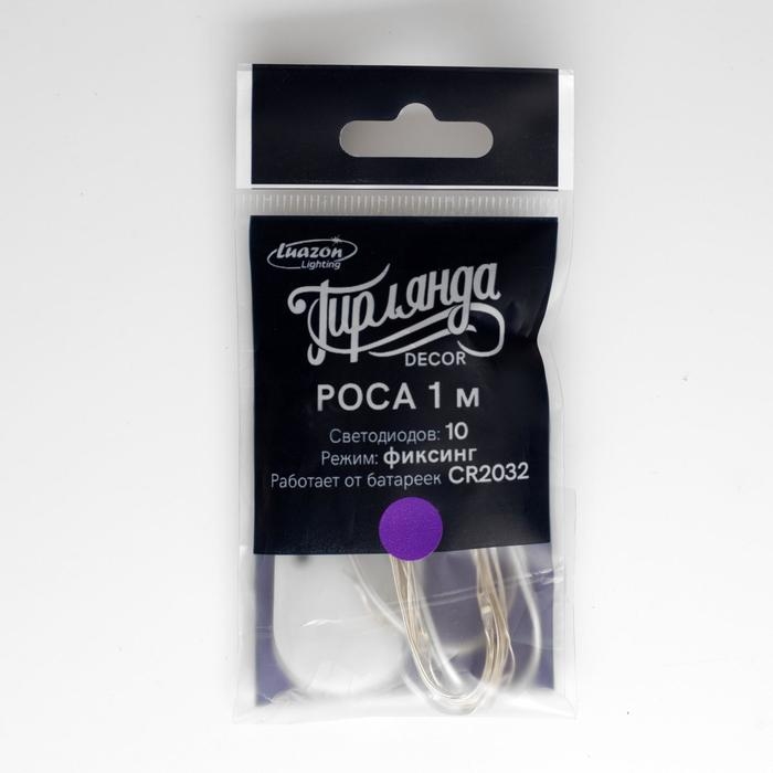Гирлянда «Нить» 1 м роса, IP20, серебристая нить, 10 LED, батарейки CR2032х2 (в комплекте), свечение фиолетовое