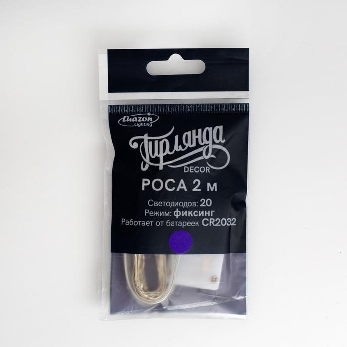 Гирлянда «Нить» 2 м роса, IP20, серебристая нить, 20 LED, батарейки CR2032х2 (в комплекте), свечение фиолетовое