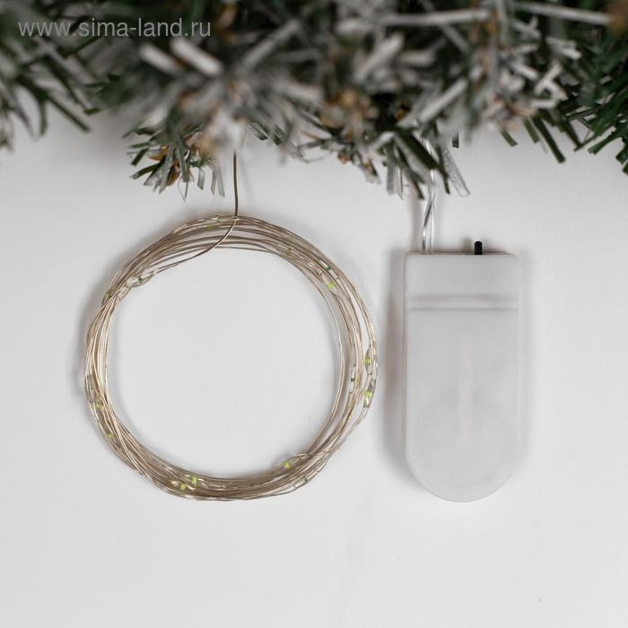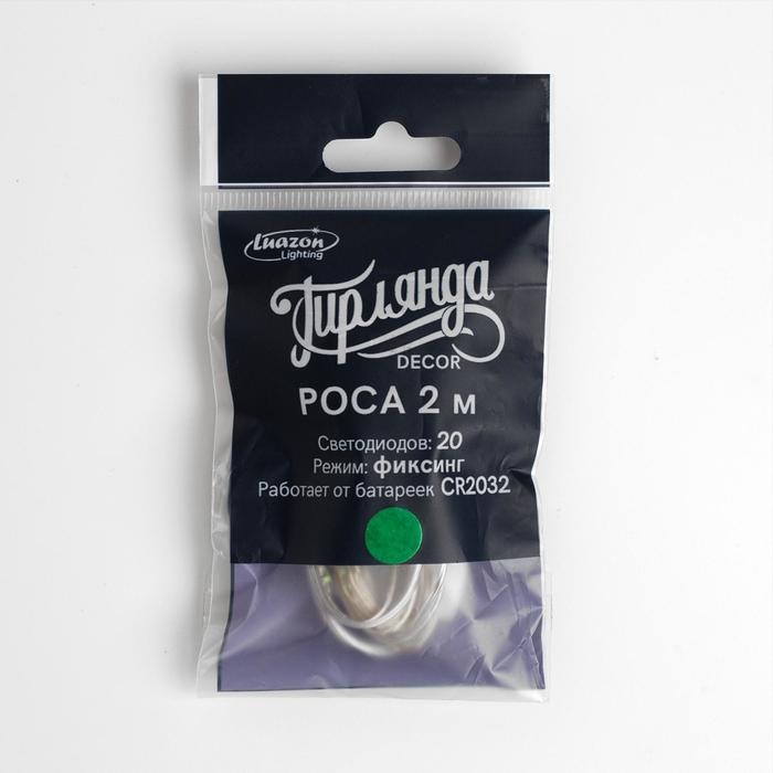 Гирлянда «Нить» 2 м роса, IP20, серебристая нить, 20 LED, батарейки CR2032х2 (в комплекте), свечение зелёное