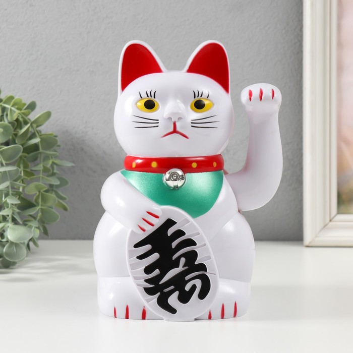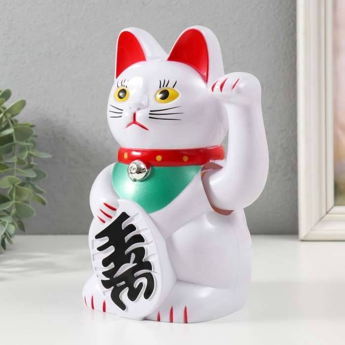 Маятник пластик от батареек 2АА "Манеки-нэко белый" 21х14х11,3 см
