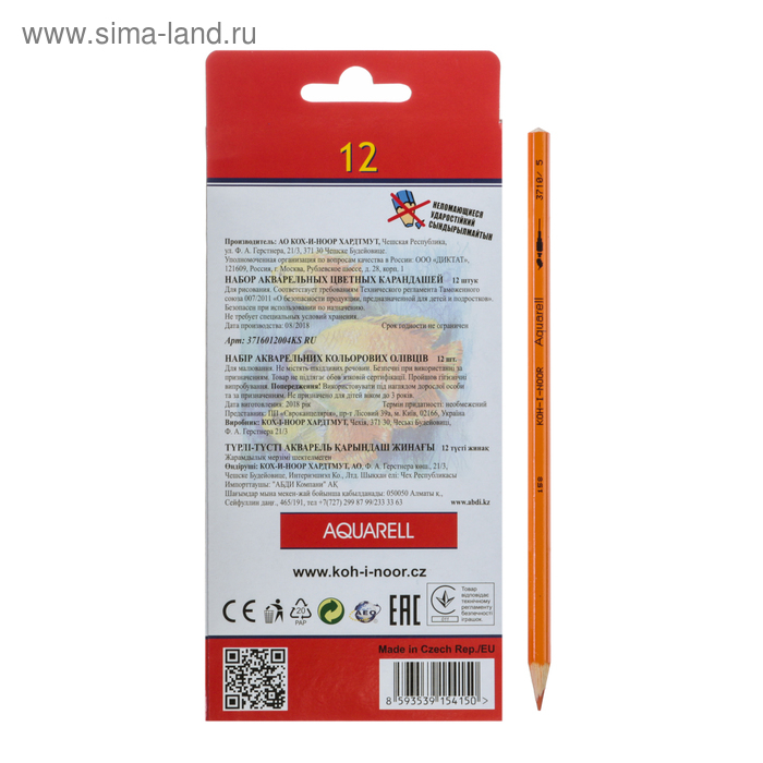 Карандаши акварельные набор 24 цвета, Koh-I-Noor Mondeluz 3718