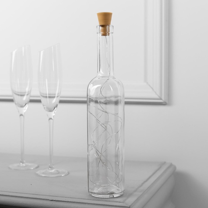 Гирлянда «Нить» 2 м роса с пробкой, IP44, серебристая нить, 20 LED, свечение фиолетовое, фиксинг, солнечная батарея