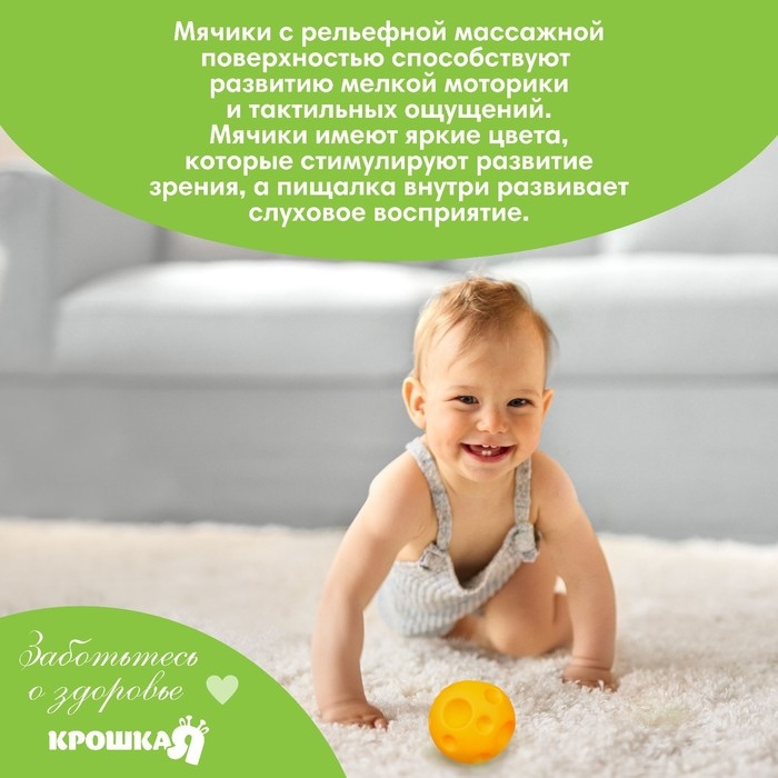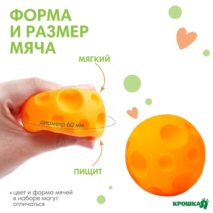 Набор развивающих тактильных мячиков «Цыпленок», 6 шт, с пищалкой, цвет МИКС, Крошка Я