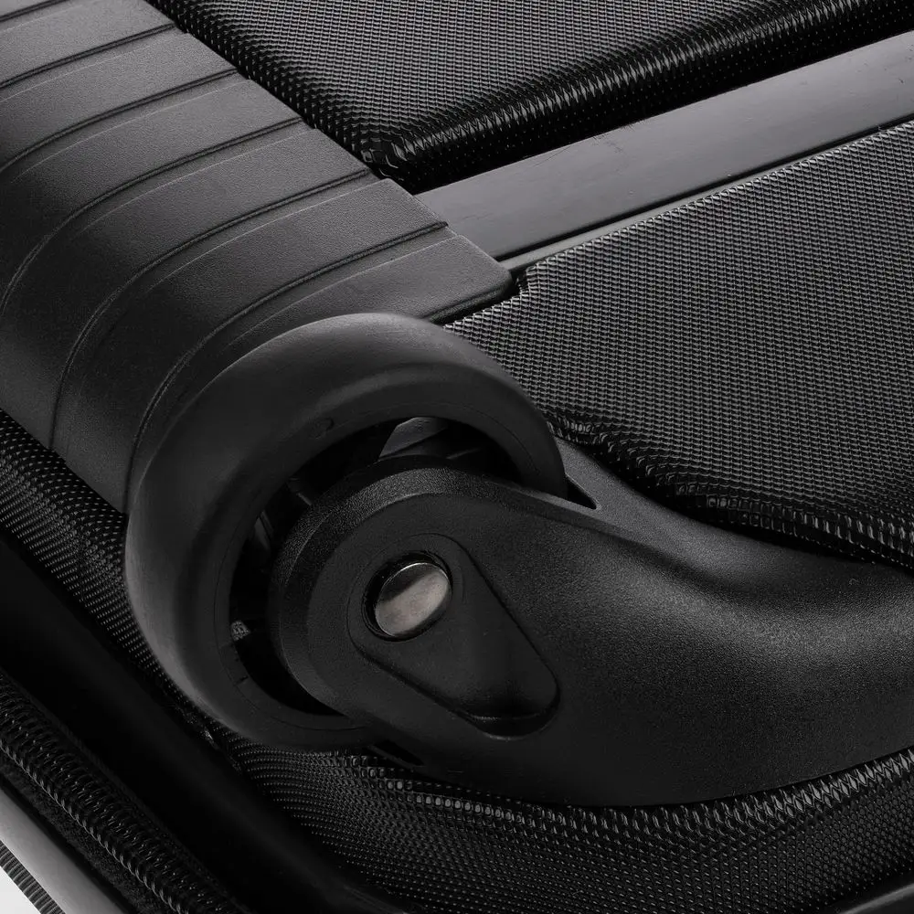 Для изготовления корпуса использован ударопрочный АБС-пластик последнего поколения, а расширение чемодана сделано из очень плотной водонепроницаемой ткани, которая идеально подходит для эффектных принтов больших размеров.