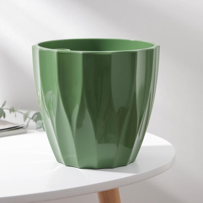 Кашпо для цветов со вставкой «Флюте», 3 л, цвет малахит