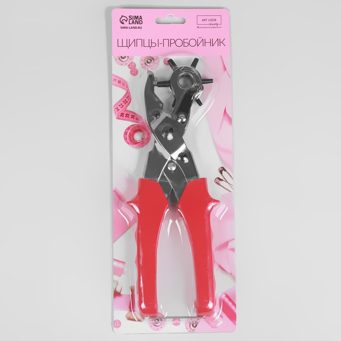 Щипцы-пробойник, с прорезиненными ручками, 21 × 13,5 см, цвет серебряный/красный