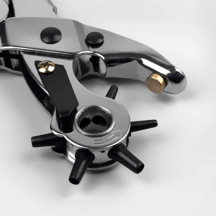 Щипцы предназначены для создания отверстий в плотных тканях, натуральной и искусственной коже. Вращающееся колесо оснащено насадками разного диаметра: от 3 до 5 мм.