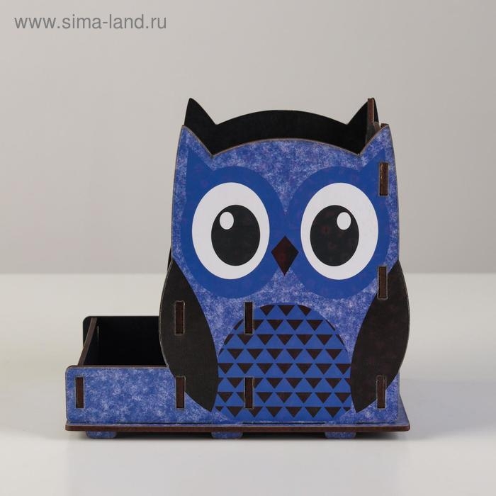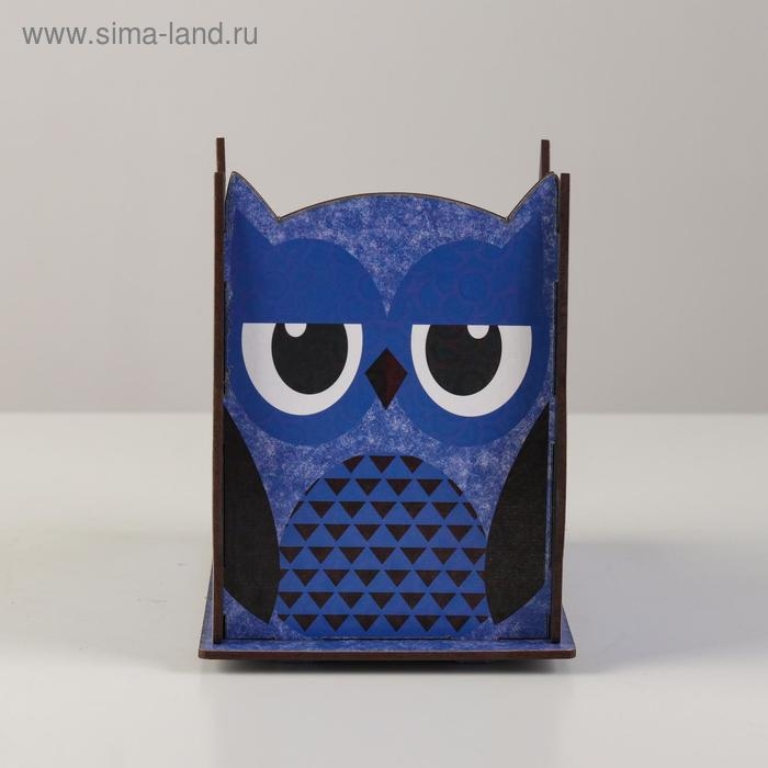 Подставка для канцелярии деревянная "Совушка, подмигивает", с принтом, синяя