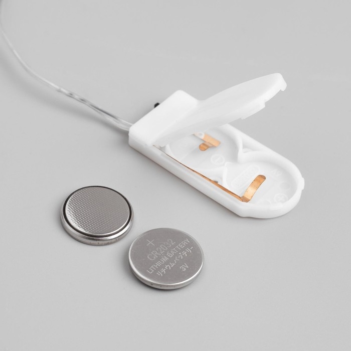 Гирлянда «Мишура» 1 м роса, IP20, серебристая нить, 20 LED, батарейки CR2032х2 (в комплекте), свечение мульти