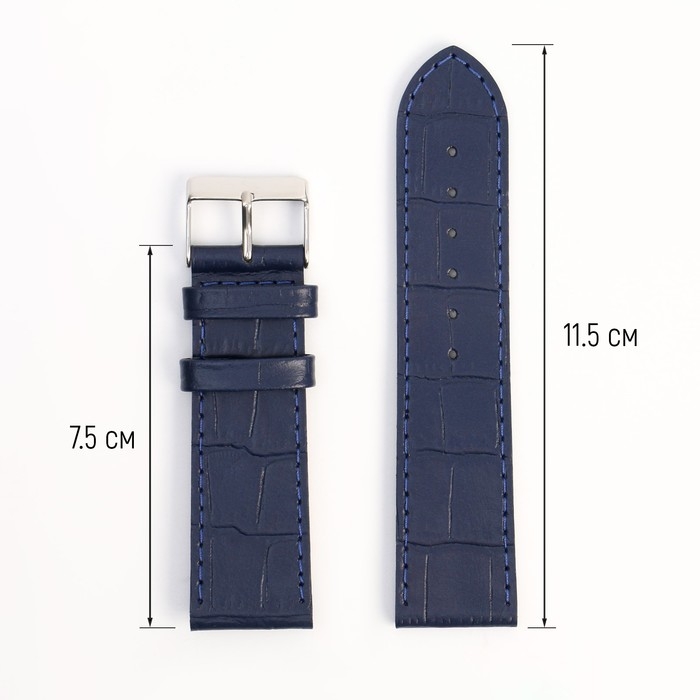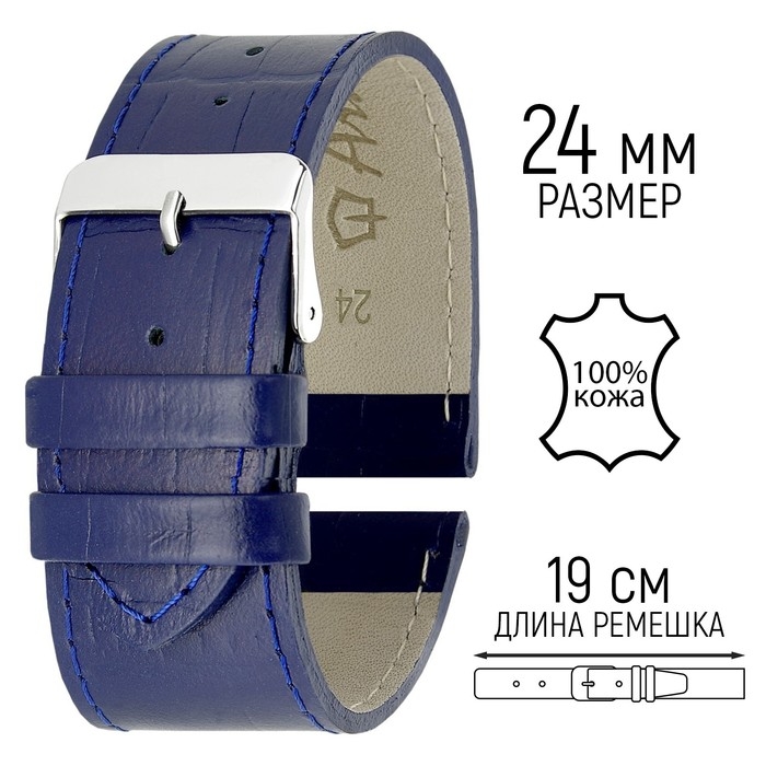 Ремешок для часов, мужской, 24 мм, запряжник 75 мм, горт 115 мм, натуральная кожа,синий