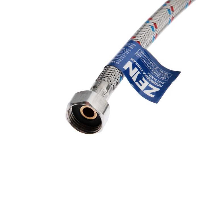 Подводка гибкая для воды ZEIN, 1/2", гайка-гайка, 120 см, с ключом для монтажа