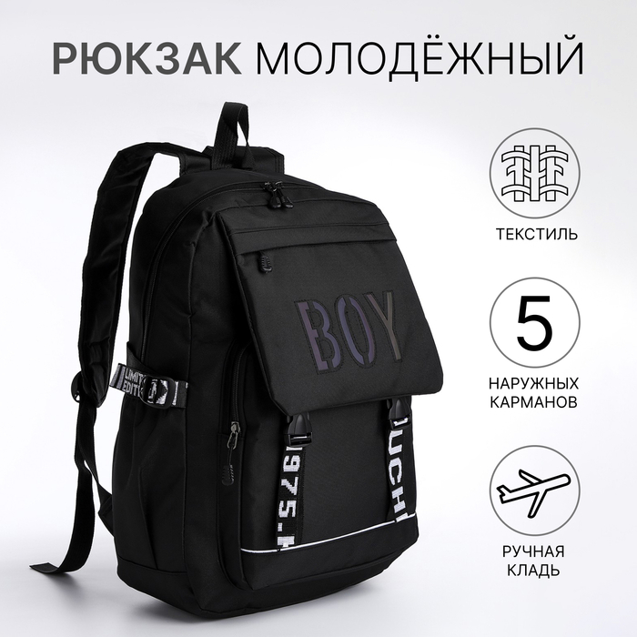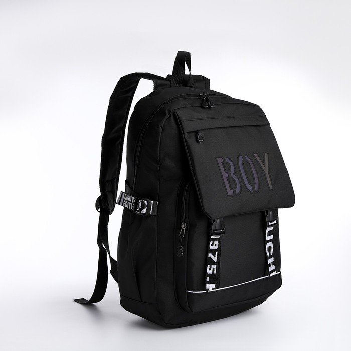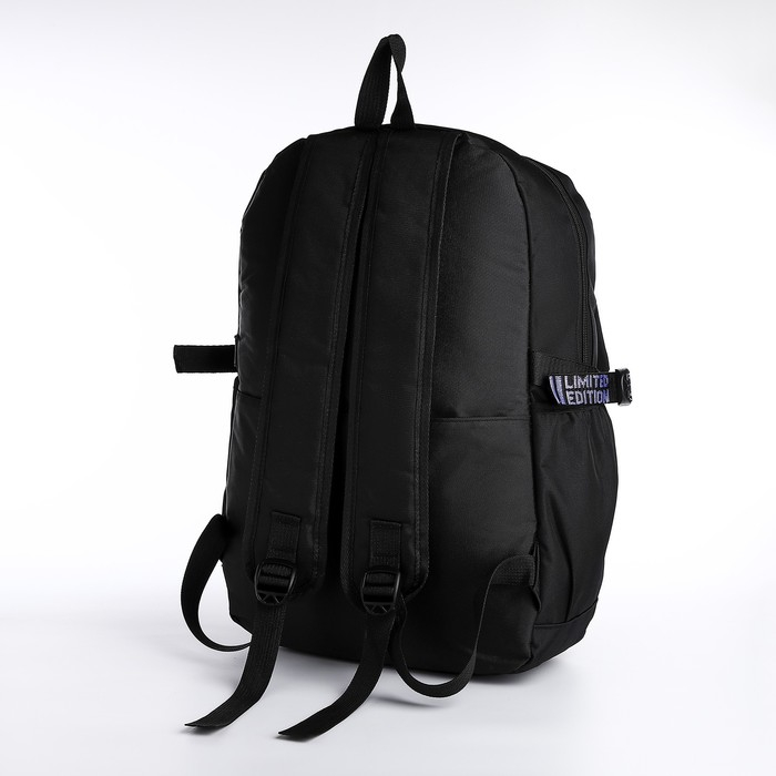 Рюкзак школьный на молнии из текстиля, 5 карманов, цвет чёрный