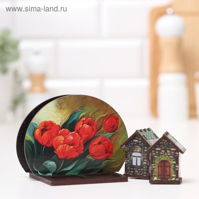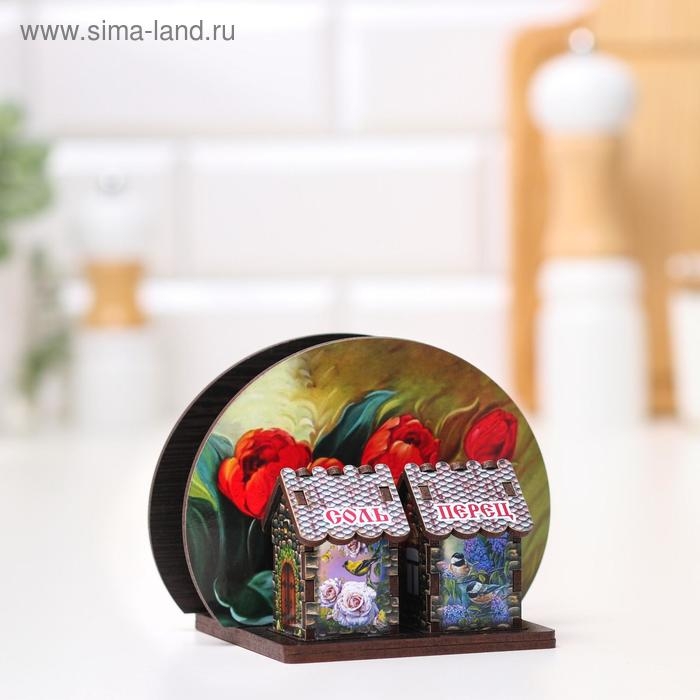Набор для специй с салфетницей "Красные тюльпаны", 13х10х10 см, микс