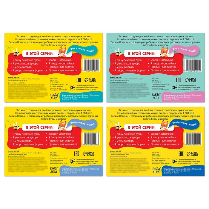 Набор многоразовых прописей с маркером 4 шт. №1, 12 стр.